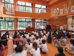 はじめに、校長先生から「2学期は運動会や修学旅行、遠足など大きな行事がたくさんあること」「継続することの大切さ」「安心安全な生活」そして、「一人ひとりにとって、充実した実り多い2学期になってほしい」というお話がありました。