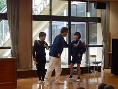 先週の金曜日に、茂木警察署の方2名を講師にお招きして、防犯教室を行いました。まず、不審者が校舎内に侵入したことを想定した避難訓練をしました。今回は、教室での対応の仕方を実践しました。次に、ふれあい広場で児童対象の防犯教室を行いました。不審者に出会ったときの心構え「いかのおすし」と防犯ブザーの使い方について説明していただきました。最後に、教職員を対象に防犯研修を行いました。刺股の使い方を中心に不審者対応についての指導をしていただきました。