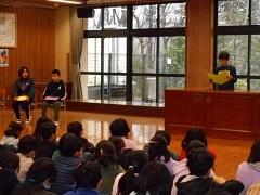 1/15の朝の学習の時間は、読み聞かせボランティア「ひまわり」の皆さんによる読み聞かせが行われました。7名のみなさんがいらしてくださいました。子供たちは、お話の世界にひたり、聞きいっていました。