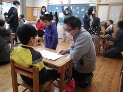 2月13日(木)、1年生の祖父母の皆様、地域の皆様をお迎えして、1年生が生活科の授業で昔の遊びを楽しみました。あやとり、お手玉、けん玉、こま回し、羽子板で遊びましたが、今まで遊んだことがない遊びも多くあり、とても楽しそうに遊んでいました。お忙しい中、一緒に遊んでいただきました1年生の祖父母の皆様、地域の皆様、本当にありがとうございました。