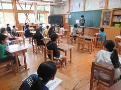 (楽しく算数の授業を受ける2年生)(真剣な表情で国語の授業に取り組む4年生)