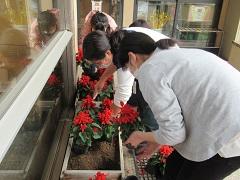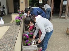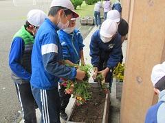 (環境緑化でサルビアやマリーゴールドを植える6年生)