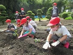 5月28日(木)、29日(金)に1・2年生が登校日を利用してさつまの苗を植えました。どの児童も、大きなさつまいもができるように一生懸命に植えました。今から秋の収穫がとても楽しみです。