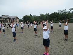 7月21日(火)、業間の体育集会でラジオ体操を行いました。ソーシャルディスタンスを取って集まり、運動会で披露するためにラジオ体操の練習をしました。伸ばすところは伸ばし、曲げるところは曲げて、しっかりできるように運動会まで練習していきたいと思います。