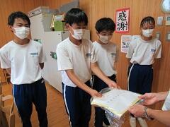 7月21日(火)、市貝中学校の生徒が総合的な学習の時間に作成したマスクを持ってきてくれました。本来であれば、5月に職場体験で本校にくる予定でしたが、新型コロナウイルス感染症対策のために中止となってしまったため、総合的な学習の時間に手作りマスクを作成してくれました。大切に使わせていただきます。ありがとうございました。
