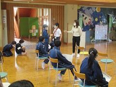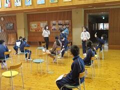 10月27日(火)、5年生が外国語の授業を行いました。今日の授業の目標は「道案内ができるようになる」ことです。ふれあい広場に椅子を置き、そこを動物園や野球場、公園などに見立てて実際に道案内をしました。どの児童も堂々と案内することができるようになりました。