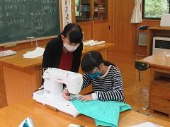 5年生が家庭科でエプロンをつくりました