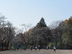 昼休みの校庭の様子と学校の紅葉です