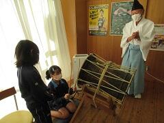 12月15日(火)、3年生が総合的な学習の「市貝町の主な施設やイベントについて知ろう」の学習で、杉山太々神楽保存会の方をお迎えして、「五行の舞」を一部実演していただいたり、お面を触らせていただいたり、太鼓をたたかせていただいたり、太々神楽に込められた願いや保存への思いをお話いただいたりしました。また、最後には多くの質問をさせていただきました。児童は、真剣に実演を見たり、お話を聞く中で、地域の人々がこれまで受け継いできたものを継承していくことの重要性を考えることができました。杉山太々神楽保存会のみなさま、本当にありがとうございました。
