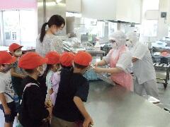 現在も新型コロナウイルス感染症対策として、登校時の手洗いや健康観察、給食時の使い捨て手袋をしての配膳など、継続して行っています。1年生も手袋をして丁寧に配膳しています。職員は特に手が触れる場所を中心に消毒をしています。