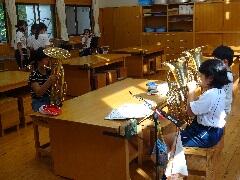 6月28日(月)放課後、今日は、金管バンド部の練習日でした。昨年度は、残念ながらほとんど練習ができませんでした。今年度は、3密を避けながらなんとか練習を行っています。現在、部員は3年生から6年生までで18名です。主に月、火、木曜日に練習しています。コンクール等は今年度も開催が難しい状況ですが、運動会等の発表の場に向けて練習を頑張っています。