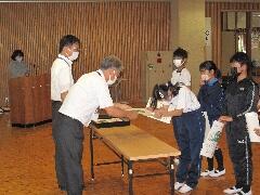 6月29日(火)業間の時間(10:10~10:25)に全校児童がふれあい広場に集合し、陸上記録会で入賞した子どもたち一人一人に賞状を渡しましました。賞状を渡すたびに大きな拍手が起こり、やさしい心の成長が感じられました。
