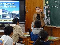 2月8日(火)6年生が4時限目(11:25~12:10)に、中学校の英語の先生が来校し、外国語の授業をしてくれました。日常会話の練習やジェスチャークイズなどを行いました。英語と日本語を混ぜながら、子どもたちに分かりやすく説明してくれました。中学生が英語で作成した部活動紹介のビデオも見せていただきました。中学生が上手な英語で部活動紹介をしているので、みんなびっくりしました。