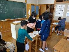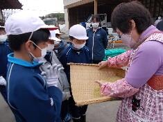 また、10:30~5年生が総合的な学習の時間として、稲の種まきを体験しました。農家のお宅で説明を聞きながら体験させていただきました。だんだん手際よく作業ができるようになり、積極的に取り組む姿が見られました。