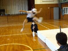 5月17日(火)4年生が5時限目の体育の時間に、体育館で走り高跳びの学習をしました。踏切りや足の上げ方など、タブレットを使って、映像で確認し合いました。そして、一人ずつゴム紐の高さを調節しながら、自分の記録に挑戦していました。