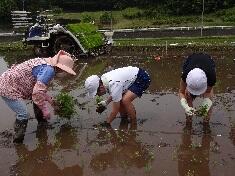 5月20日(金)5年生が、総合的な学習の時間(10:30~12:00)に田植え体験をしました。水田の歩き方や苗の植え方、そして、機械を使っての植え方まで、体験をしながら学習することができました。教えていただいた川又さんには、たいへんお世話になりました。有意義な体験をすることができました。