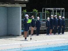 5月24日(火)業間の時間(10:05~10:25)にプール開きを行いました。安全にプールに入ることや目標をもって水泳に取り組むことなど、代表児童からの言葉がありました。今年は、昨年よりも少し早くプール開きを行いました。天候によりますが、昨年よりも少しでも多くプールに入りたいと思います。
