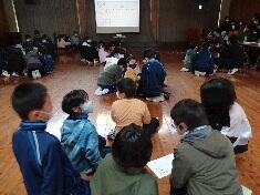 11月24日(木)全校児童を対象に読書祭りを行いました。図書委員会の児童が中心になって会を進行しました。ペープサート劇や読書クイズを行いました。また、読み聞かせボランティアの「みなみかぜ」さんに来ていただき、スクリーンに映像を映しながら朗読劇を行っていただきました。子どもたちから「朗読劇が迫力があってすごかった。」「本をもっと読んでみたい。」など、感想の発表がありました。