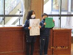 12月9日(金)業間の時間(10:05~10:25)に全校児童がふれあい広場に集まって、人権集会を行いました。人権に関する絵画コンテストで入賞した児童の表彰を行った後、各クラスで相談して決めた人権に関する標語を発表し合いました。思いやりの言葉をかけるようにしたり、相手の気持ちを考えたりして、笑顔の輪ができるようなクラスを目指すというような標語でした。教育目標にある「よりやさしく」について、全校児童で考えることができた人権集会になりました。