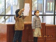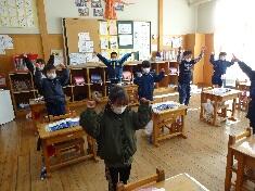 12月20日(火)あと3日で2学期も終わりです。子どもたちは、2学期のまとめの学習を頑張っています。音読発表をみんなの前で行ったり、音楽に合わせてみんなでダンスを考えたり、また、算数の復習や家庭科での作品の仕上げを頑張ったりしていました。そして、全校体育集会では、校庭で元気に縄跳びを行いました。