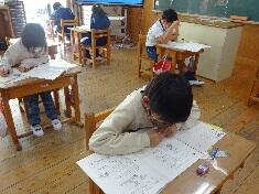 12月16日(金)全校児童を対象とした学力テストを昨日と本日行いました。本日は、算数と社会を行いました。算数は、全学年の児童が行いましたが、社会は、5・6年生が行いました。1・2学期のまとめとなる学力テストですので、結果などを参考にして、3学期、そして次の学年につながるようなめあてを子どもたちにもたせていきたいと思います。