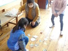 ☆1年生が、生活科の学習で昔の遊びを楽しみました。お手玉やおはじき、めんこ、だるまおとし、竹とんぼ、こままわし、はごいた、けん玉など、グループに分かれて楽しみました。夢中になって難しい遊びにも挑戦していました。