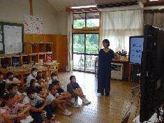 7月19日(水)5年生が、オンラインで沖縄県の伊良部島小学校と交流会を行いました。交流会では、地域の特産物や名所など地域の様子について、互いに紹介し合ったり、クイズを出し合ったりしました。また、互いに質問をするなど、楽しい交流をすることができました。次回は、2月頃予定しています。その時は、「サシバ」を中心とした愛鳥活動について発表する予定です。