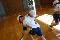10月24日(火)5・6年生が体力向上授業で汗を流しました。県の体力向上エキスパートティーチャーに来ていただき、楽しく体を動かしながら体力つくりとなる運動を体験しました。互いに引っ張ったり、押し合ったり、組み合ったりしながら筋力や柔軟性を高める運動をしました。また、アメリカンドッジボールも体験しました。外野は無しで、当てられると相手チームのメンバーになってしまう新しいルールのドッジボールを体験しました。