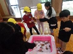 11月13日(月)1・2年生が、生活科の学習で、杉山保育所や市貝たいよう幼稚園の園児を招待して、ふれあい活動(幼保小交流事業)を行いました。1・2年生は、この日のために自然のもの使って魚釣りゲームや迷路を作ったり、身近にあるものを使ってボウリングゲームなどを作ったりして準備をしました。ゲームの仕方やルールなど、積極的に説明し、みんなで楽しいふれあい活動ができました。