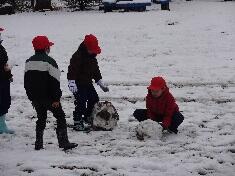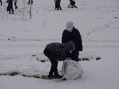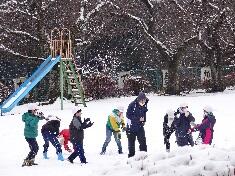 ◎昨日から降り続いた雪が5cmぐらい校庭に積もり、休み時間には、子どもたちが外に出て、雪合戦や雪だるま作りなど、夢中になって雪遊びをしていました。