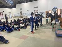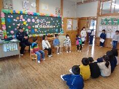 ◎来年度入学する児童の一日入学を行いました。新1年生になる子どもたちは、学校探検をしたり、お巡りさんから交通安全についての話を聞いたりしました。また、現在1年生の児童と交流会を行いました。一緒に遊んだり、プレゼントを渡したりしながら、「4月から皆さんに会えることを楽しみにしています。」というメッセージを送りました。