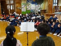 2月22日(木)3年生が昼休みに、ふれあい広場で音楽発表会を行いました。音楽の時間に学習した合奏や合唱をみんなに聞いてもらいたいということから、3年生が自主的に発表会を開きました。集まってきた児童の声援や手拍子を受けながら堂々と発表し、みんなから大きな拍手をもらいました。