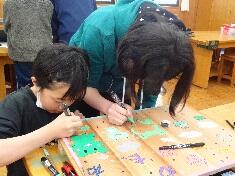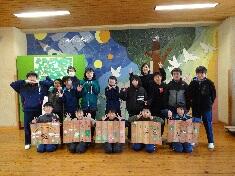 2月27日(火)5年生が、総合的な学習の時間にカエルの橋づくりを行いました。サシバの餌となるカエルをもっと増やそうと、昨年度からカエルの橋づくりを始めています。カエルが水田わきのU字溝に落ちないよう、願いを込めて制作しました。3月中に設置する予定です。