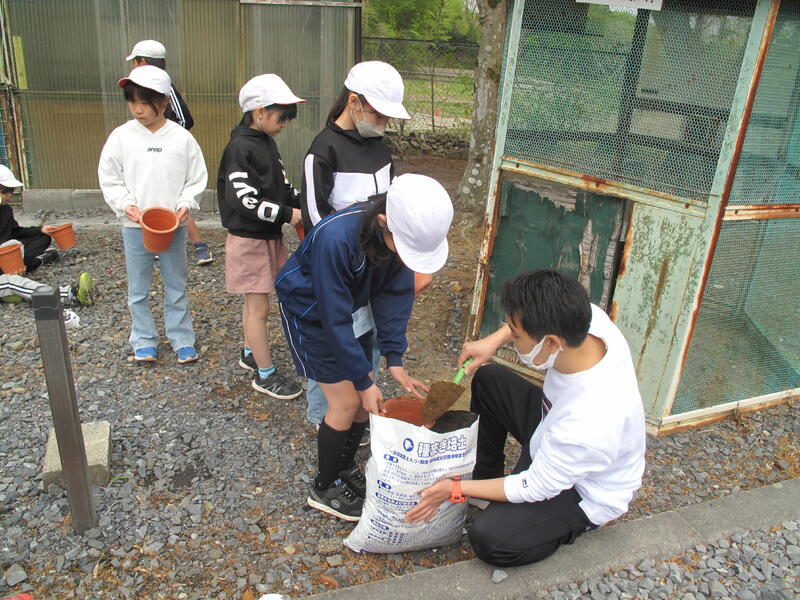 本日の4校時、理科の「植物を育てよう」の学習で、ヒョウタン種まきを行いました。