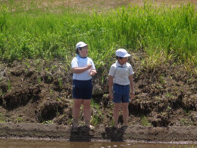 さて、去る5月17日(金)5年生がアグリ体験で笹原田の川又さん宅にて田植えを実施しました。