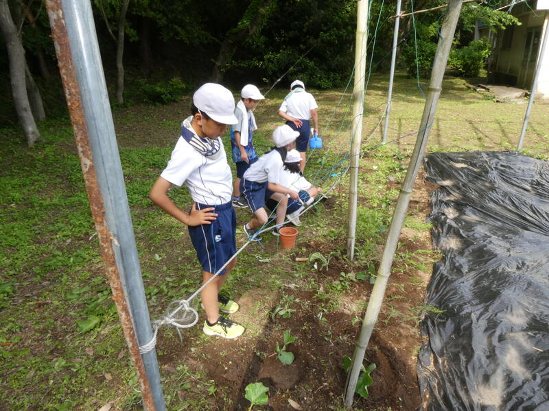 5月23日(木)の6校時、理科の授業で育てているヒョウタンを畑に移植しました。