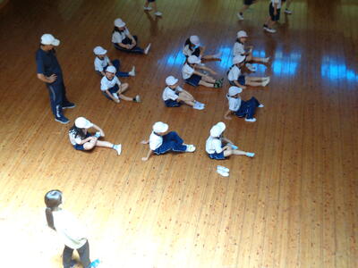 1・2年生は、ふれあい広場にて「長座体前屈」の練習です。