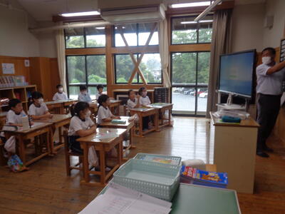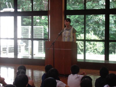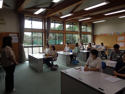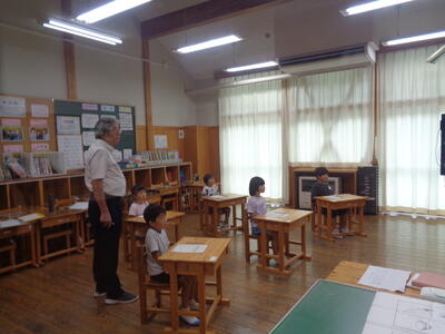 小貝っ子も真剣に 新しい養護の先生を見つめていました