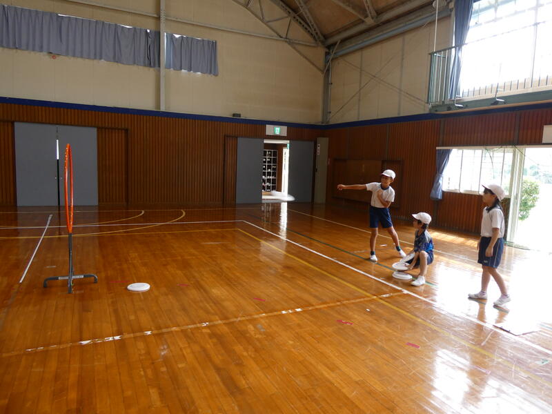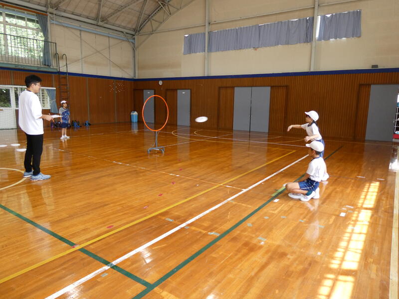 子どもたちは、とても楽しそうに生き生き活動しました。フライングディスク、難しかったですね。