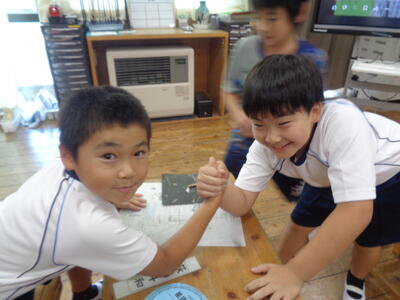 腕相撲していました。