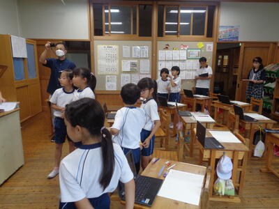 別の時間には 3年生は社会 「東西南北」の確認です。