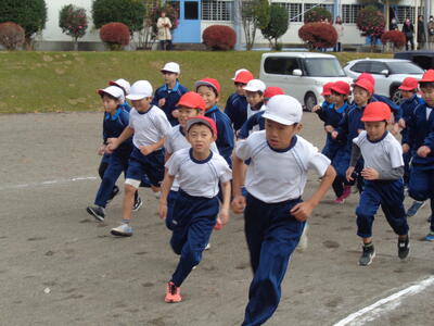 寒い寒い朝曇りでしたが、本日は自由参観日&持久走大会!