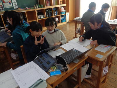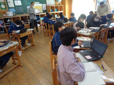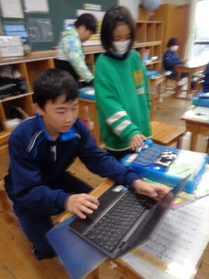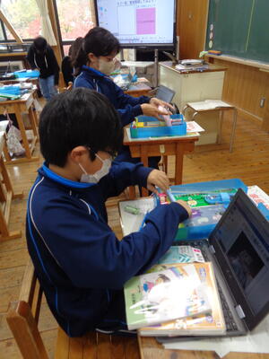 6年生 国語 SDGsについて各自のテーマに沿ったプレゼン作成 チェック中。