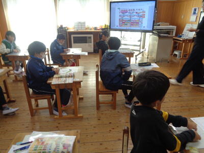 1年生 国語 一人一人発表をして聞いているメンバーは質問をしました。