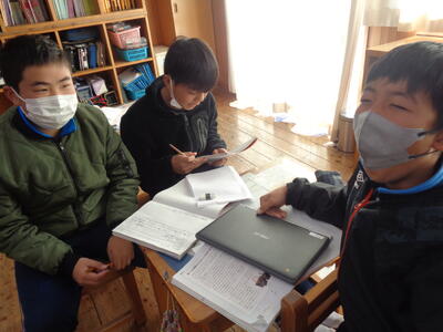 教室内で2人組で距離を取って、発表。聞き役がチェックします。