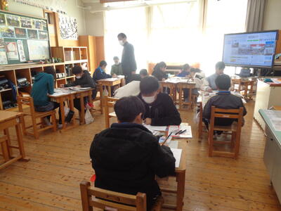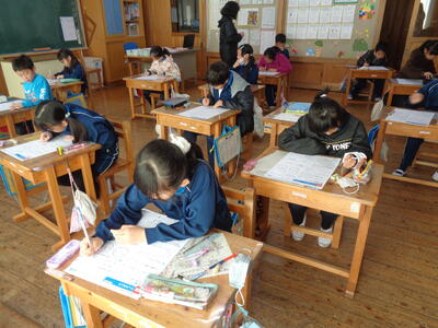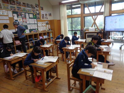 (3年生は1時間目に漢字の50問テスト確認をしました。いよいよ学期末ですね。)