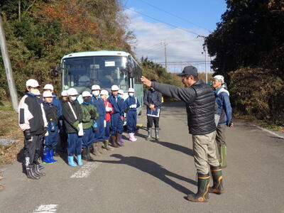 この後、5年生は3・4時間目、里山保全の取組について総合的な時間の学習で続谷地区に出かけました。