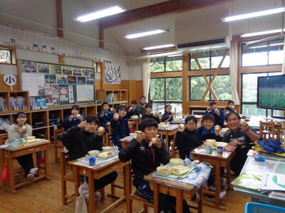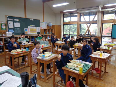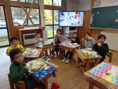 2年生も 先週から好き嫌いなく食べられることが増えました。日直さんがタイマーをかけて最初の5分間は默食、その後は楽しく会話しながらの給食です。