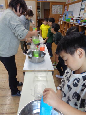 学習内容がよく理解できるようにに色水を先生方がつくってくれました。(おいしそうでした。)