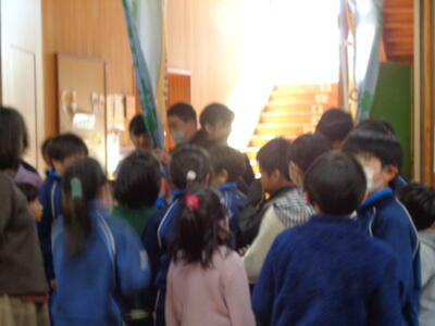 今日は業間に「あいさつ旗取り合戦」を仲良し班で、実施しました。